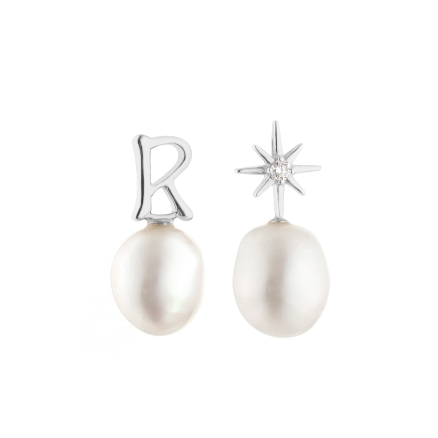 Elevate your style with our Pearl Initial Drop Earrings, featuring a fresh water pearl for a touch of elegance.